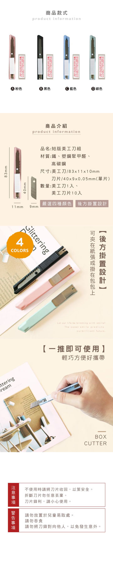 ★用途:採用薄刀片,適合一般輕度之切割作業,如紙張 布料 膠片 橡膠等材料