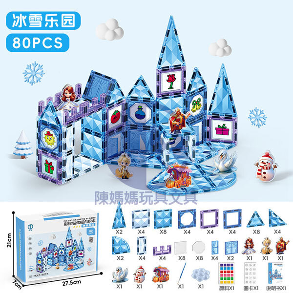 16-08830<<(80PCS)冰雪樂園彩繪磁力積木>>