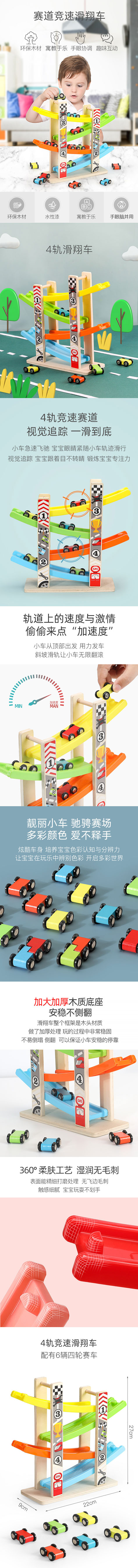 ★精巧的彎道設計 讓小車能順利的拐彎,下坡隨著慣性加大,彎道的設計也有所改變小孩看小車下滑進入各彎道十分有趣