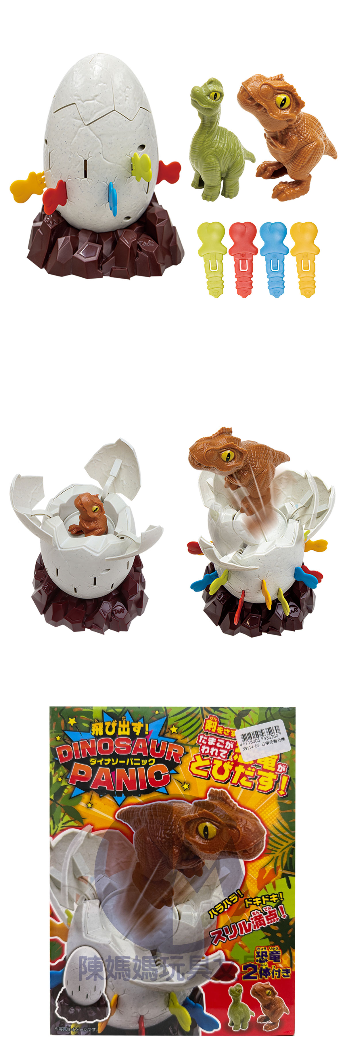 ★輪流將骨頭插入蛋中,恐龍就會「砰」的一聲蹦出來!