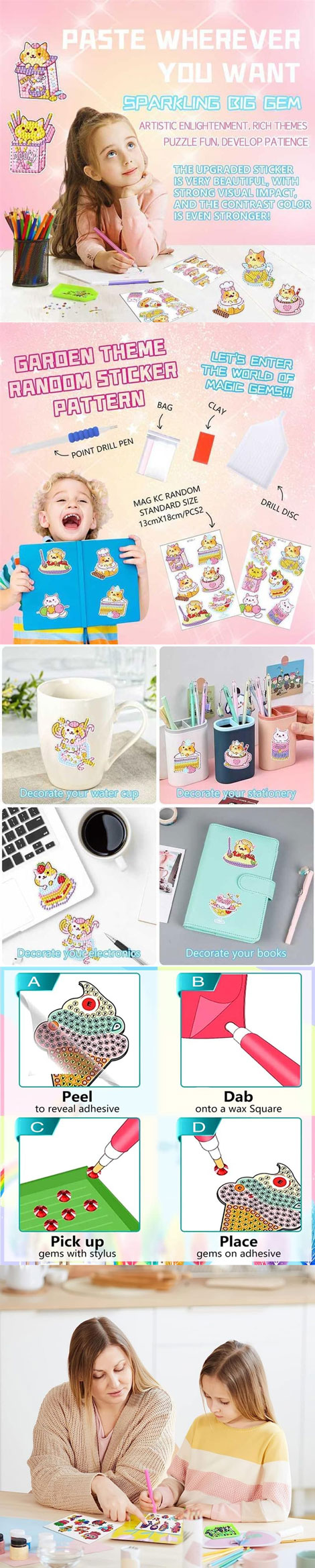 ★製作完成的鑽石貼紙可以作為裝飾,用於裝飾杯子、帽子、手機、電腦、書籍、冰箱、相框、紀念冊或任何您想要的地方!