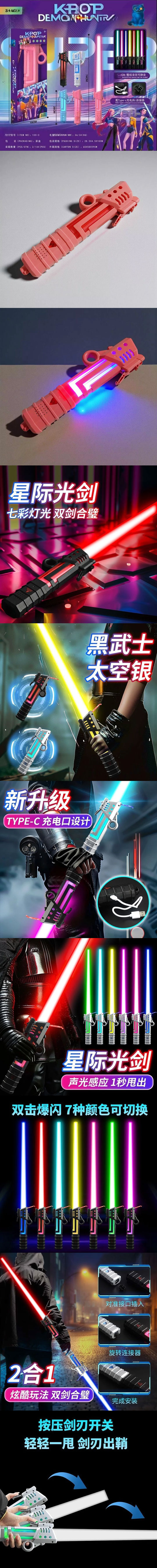 ★Type-C 充電,重力傳感器樂趣加倍,酷炫的伸縮激光劍,多種顏色隨心切換不傷眼