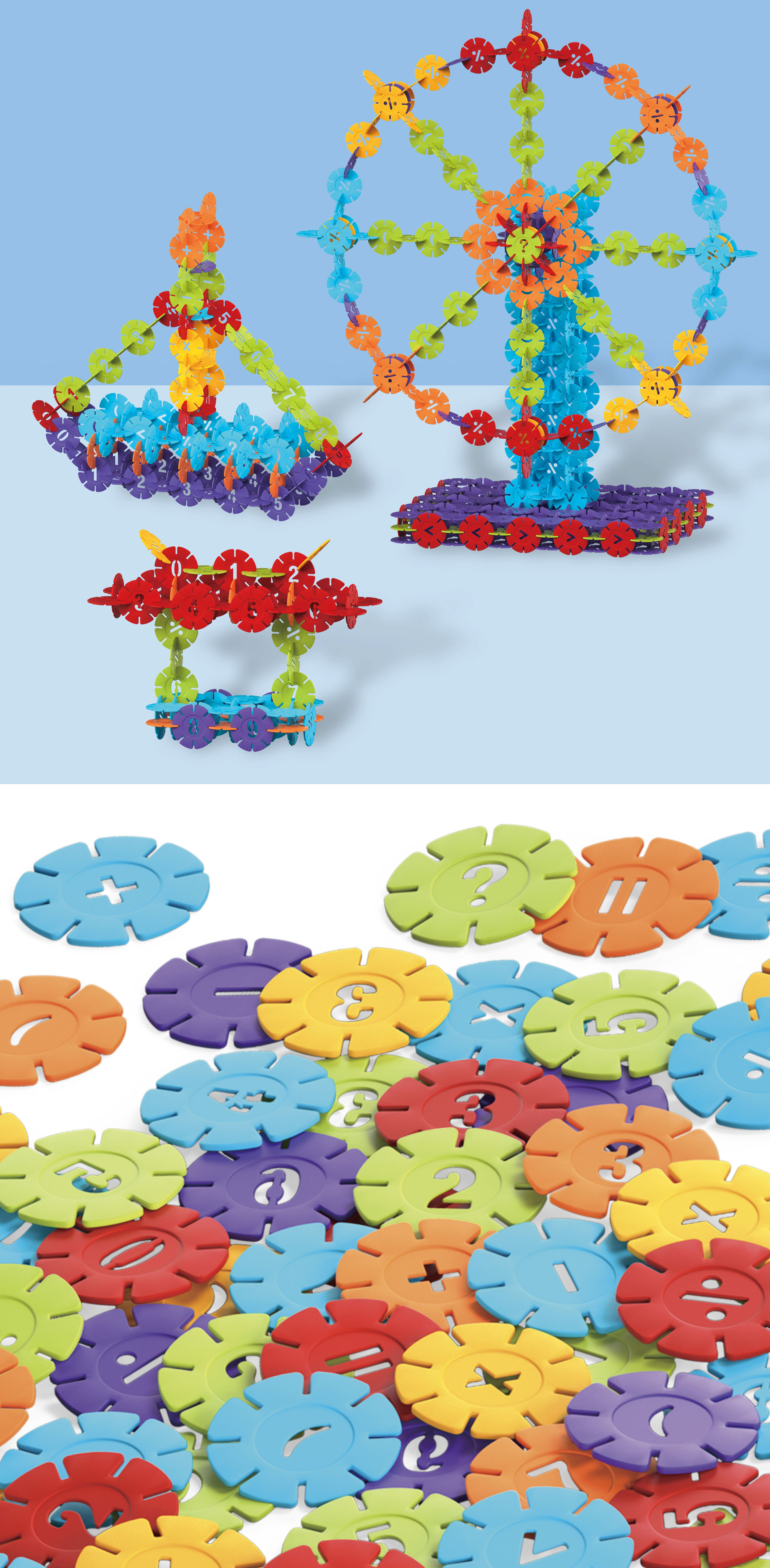 ★圓形結構可從中心點多方向連接,自由轉角、堆疊與連結,打造高難度的立體結構