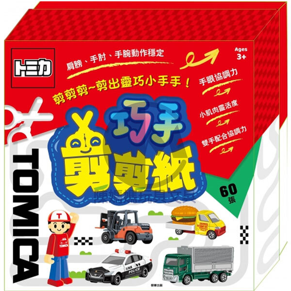 ★多美小汽車 巧手剪剪紙內含60張17×17公分的趣味剪紙,採用比市面上較厚的紙張,適合幼童第一次開始練習使用剪刀。